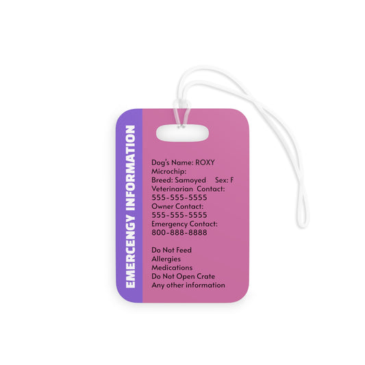 CRATE/BAG TAG - EMERGENCY INFO