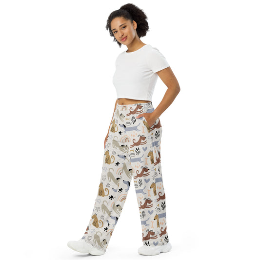 PAWS! All-over print unisex wide-leg pants