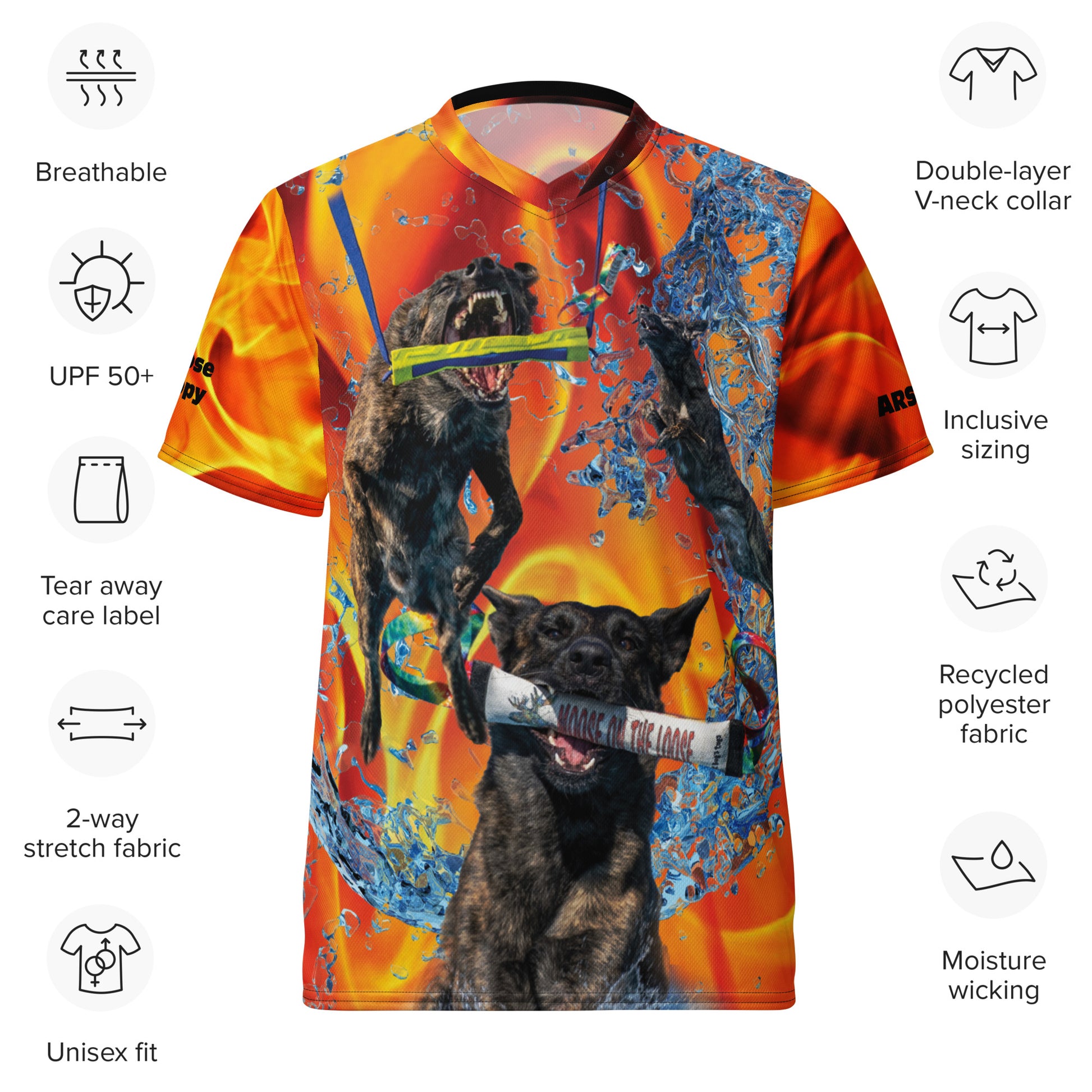 Looking for the perfect sports jersey? We have you covered—made of 100% recycled polyester fabric, this shirt is breathable, moisture-wicking, and has a double-layered v-neck collar that creates a premium look.