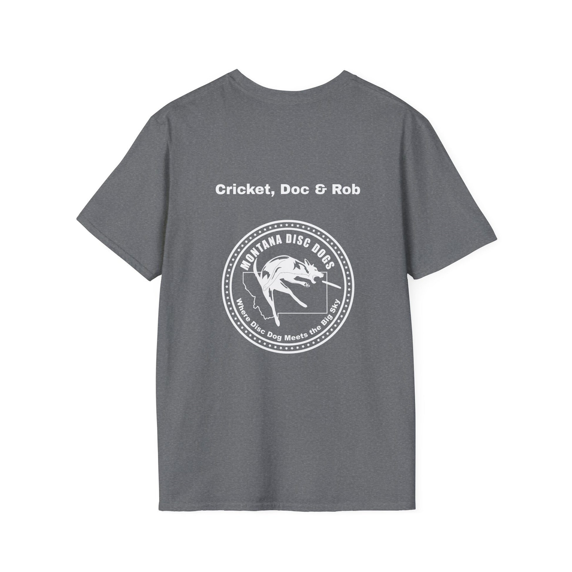 Cricket, Doc & Rob *MONTANA DISC DOGS Unisex Softstyle T-Shirt
