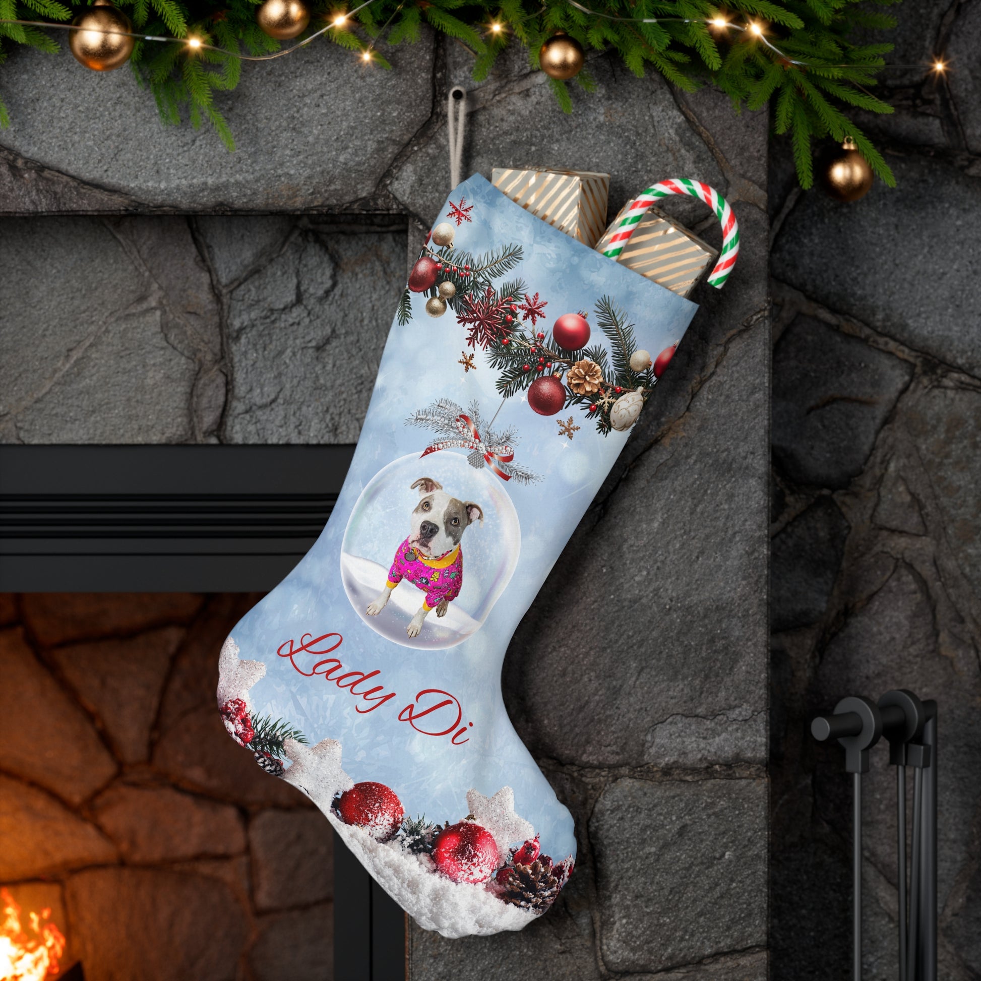 For Holidays and beyond, this personalized Santa stocking comes to add a custom touch to your decorating and storing needs. Made with luxuriously soft faux suede, this stocking features a hanging loop for convenient placement anywhere around the house.